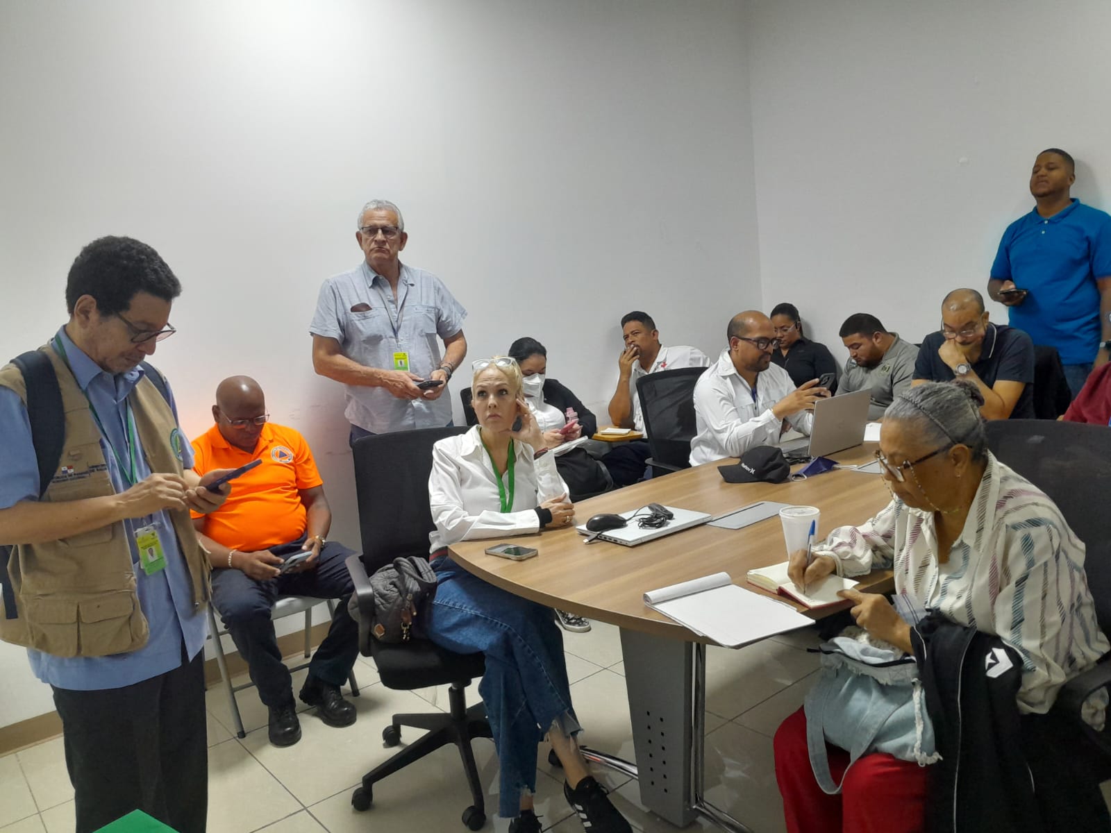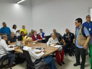 Yaviletsy Centella directora regional de salud de San Miguelito, directores regionales del distrito, y su equipo de trabajo, participan de una reunión del CODES, conformado por diversas instituciones, con la finalidad de monitorear y coordinar acciones de respuesta inmediata ante alguna afectación que se pudiera estar dando ante el fenómeno meteorológico.