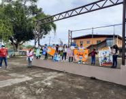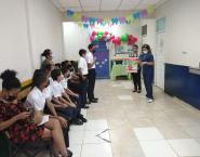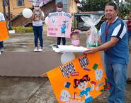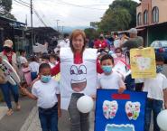 Las sesiones educativas también se realizaron en las escuelas donde se cuenta con programas de Salud, dónde los niños se involucraron en la confección de murales, panfletos, pancartas y hasta disfraces que utilizaron para realizar una caminata.