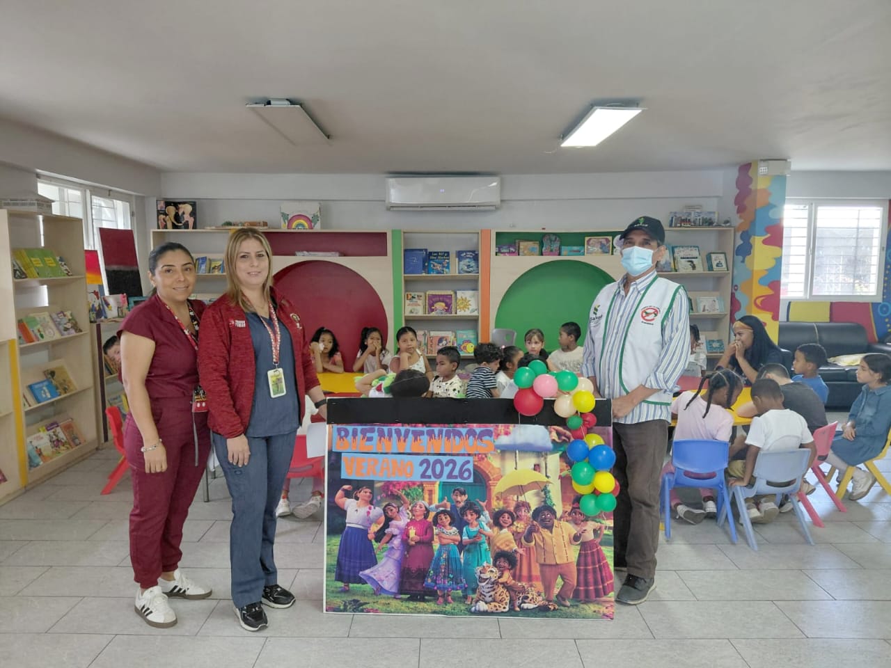 Reforzando el trabajo interinstitucional e impactando a más de 100 personas, el equipo del Centro de Salud Rómulo Roux conformados por las secciones de Psicología, Trabajo Social y Promoción de Salud participaron  del Verano Felíz organizado por el Municipio de Panamá(MuPa) en la biblioteca del 20-30 de Pueblo Nuevo, donde el  personal de Salud dialogó con niños y jóvenes sobre las campañas contra el dengue, enfermedades respiratorias y temas relacionados al adolescente enmarcado en el Verano Seguro Saludable qué promociona el Minsa. También, el equipo de Promoción y Enfermería en las diferentes salas de atención, del centro brindó orientación en la importancia de aplicar las dosis de vacunas, protección del cáncer de piel, dengue, Oropouche y el Programa de Enfermería.
