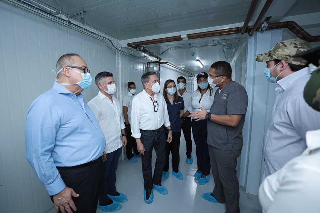 Este jueves, el presidente de la República, Laurentino Cortizo Cohen, la ministra de Salud, Rosario Turner Montenegro, realizaron un recorrido al nuevo Hospital Integrado “Panamá Solidario” en Albrook, para pacientes graves por COVID-19.