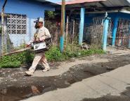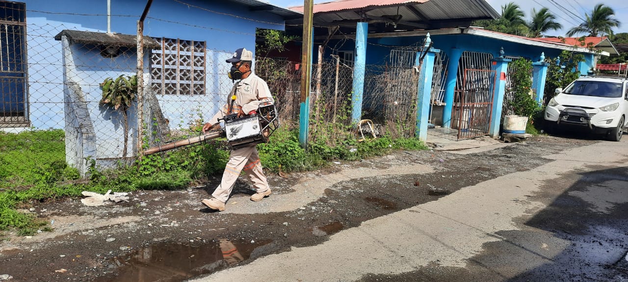 Técnicos en Control de Vectores en Bocas del Toro en sus programaciones realizan operativo de fumigación en el corregimiento de Finca # 6, en dicho lugar el equipo en sus intervenciones de nebulización casa por casa, también inspeccionaron los predios dentro y fuera, instando a las personas estar vigilantes y eliminar los criaderos potenciales del mosquito transmisor de dengue.