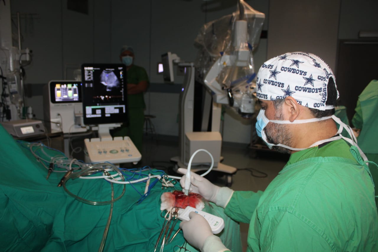El moderno servicio de neurocirugía tiene microscopio híbrido con sistema de visualización robótica, aspirador ultrasónico para tejidos, bandeja de instrumental quirúrgico de neurocirugía, bandeja con clips para ligar aneurisma, sistema de taladro quirúrgico de alta vela, doppler vascular con opción de monitoreo transcraneal y vascular periférico, equipo de ultrasonido para uso transoperatorio con aplicaciones con aplicaciones avanzadas.