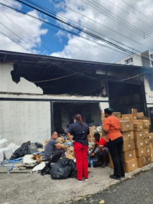 La Región Metropolitana, a través del Centro de Salud Dr. Roldán Vallejos de Río Abajo, se sumó a la atención de los afectados por el incendio de un taller de repuestos en el área de calle 11 y media.