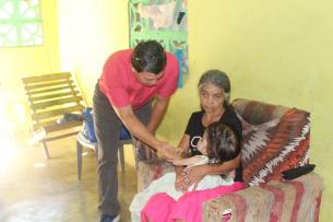 La niña Evelyn Madrid de tres años, quien padece de Hidrocefalia y reside en la comunidad de San Pedro del Rincón, corregimiento de Los Algarrobos en Santiago de Veraguas, recibió en su hogar la visita de personal de la Región de Salud de la provincia para evaluar su situación y buscarle una solución a su caso.