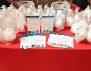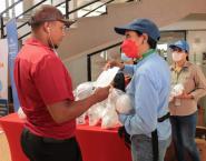 Personal de Promoción de la Salud del Ministerio de salud, repartieron más de mil kits con gel alcoholado y mascarillas.