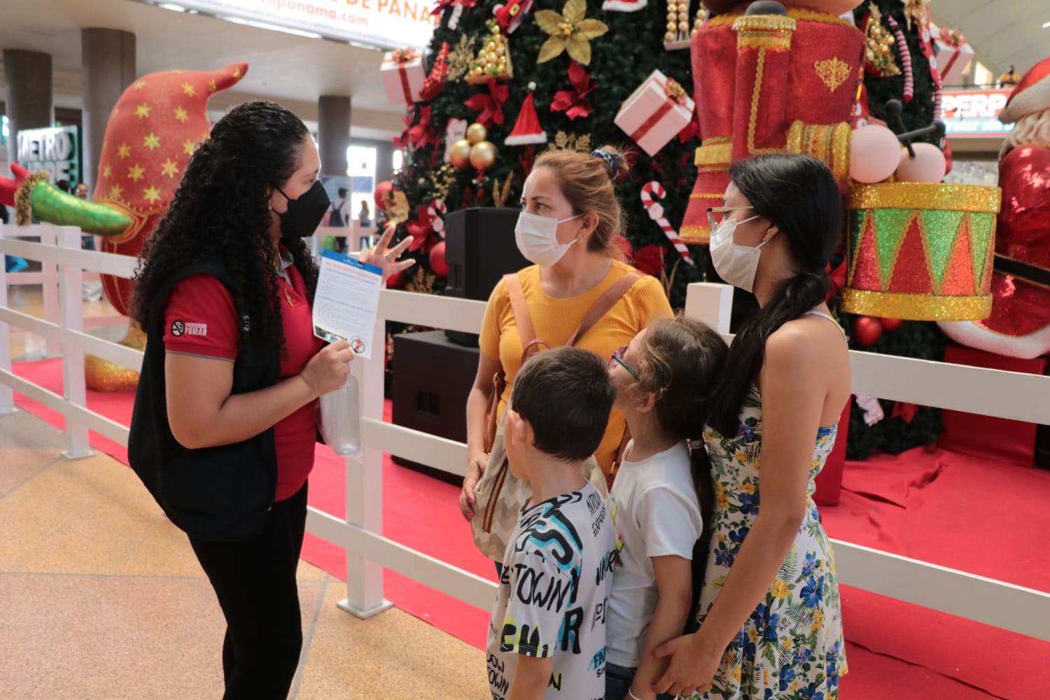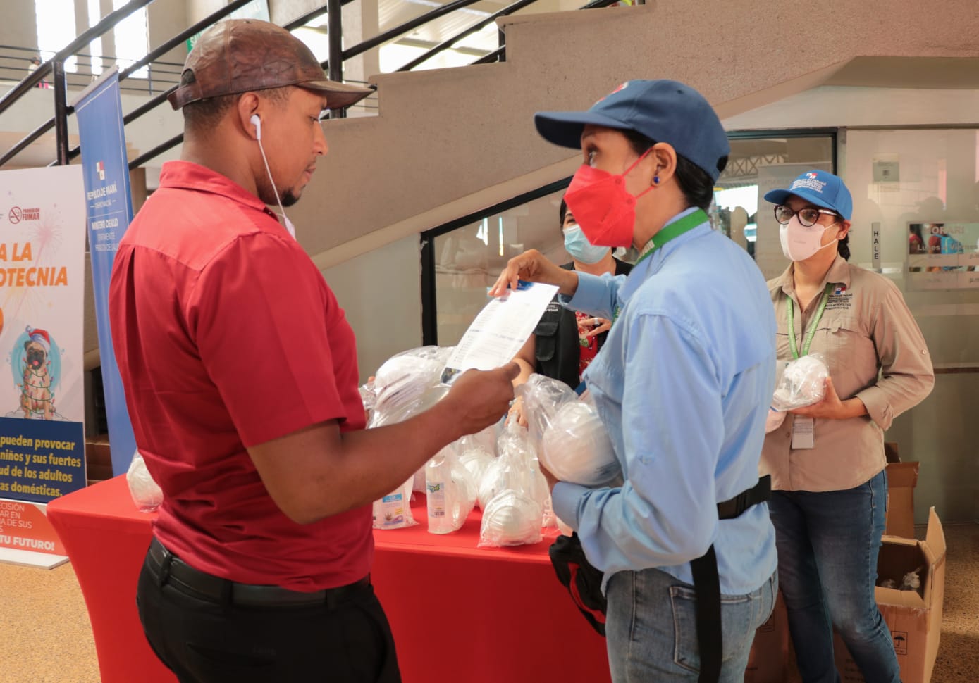 Panamá, 23 de diciembre de 2022. El Ministerio de Salud (MINSA) a través de la Dirección de Promoción para la Salud entregó este viernes 23 de diciembre en la Gran Terminal de Albrook, más de 8 mil mascarillas, 2 mil Kits con gel alcoholado y volantes sobre las medidas de bioseguridad que se deben mantener en estas festividades a viajeros y transeúntes, informó Gabriela Salazar jefa de la dirección Nacional de Promoción del MINSA.