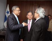El ministro de Salud, Fernando Boyd Galindo en compañía del viceministro de Salud Manuel Zambrano Chang, estuvieron presentes en la toma de posesión del nuevo director de la Caja de Seguro Social Dino Mon, acto realizado en la primera Policlínica construida por la CSS, Presidente Remón de calle 17.