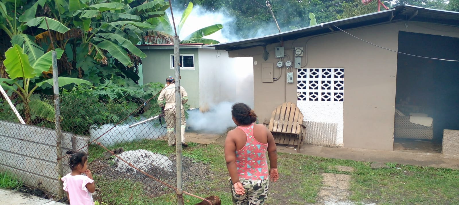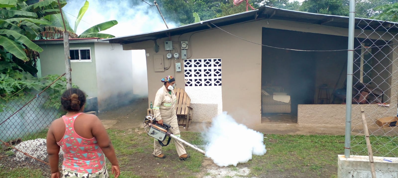 El pasado domingo 3 de septiembre los sectores 2, 3 y 5 de Villa Grecia en el corregimiento de Las Cumbres, fueron nebulizados desde tempranas horas del día por parte de vectores de las regiones de salud de Panamá Norte, Colón, Metro, Panamá Oeste y San Miguelito en una tarea conjunta interregional para bajar los casos de dengue en los sectores mencionados.
