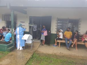 Personal de Salud que labora en el Centro de Salud de Valle Riscó, distrito de Almirante, orientó a los pacientes que acuden por atención médica al nosocomio.